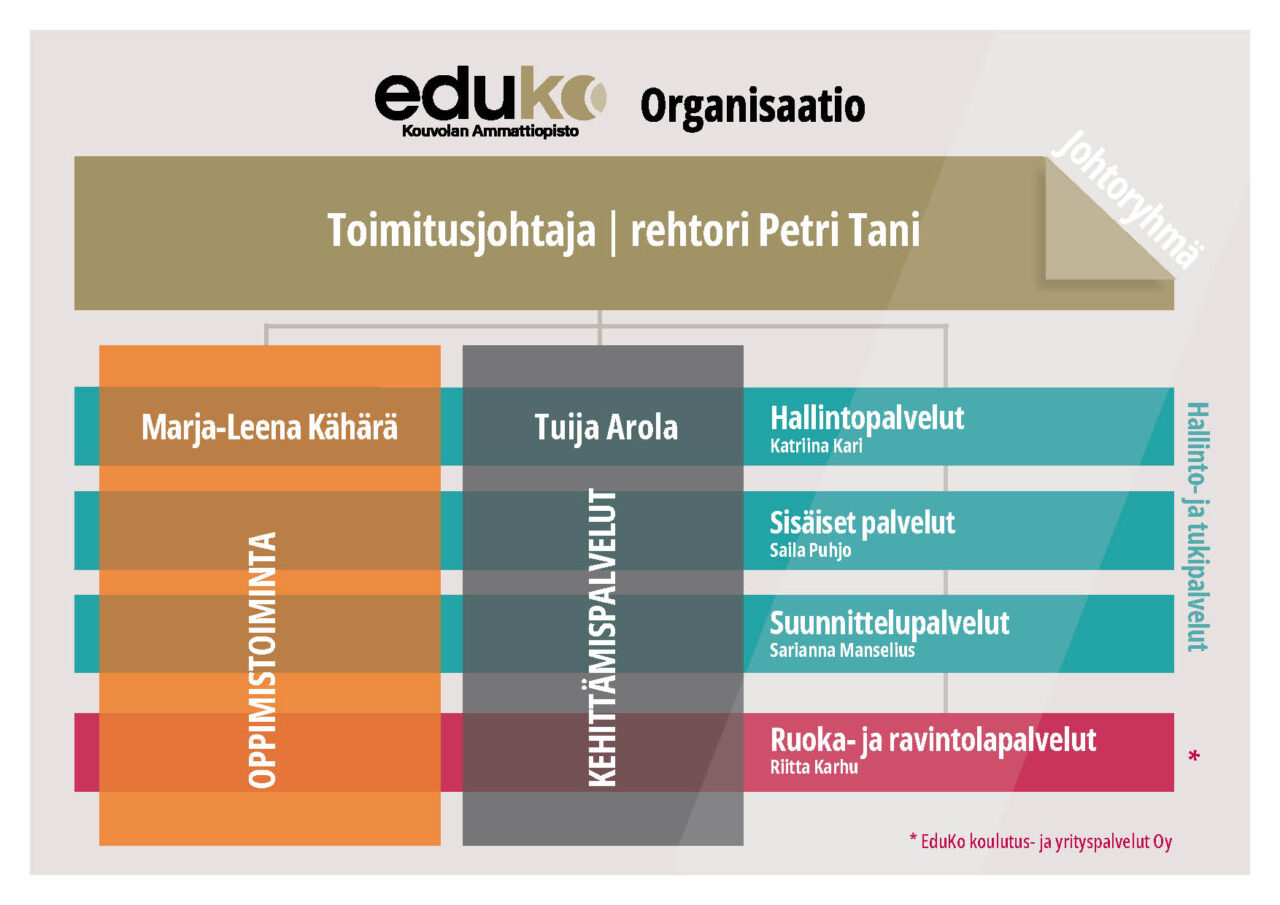 Eduko-konsernin organisaatio on rakennettu strategiamme mukaisesti oppimistoiminnan ympärille, jonka keskiössä on tärkein asiakkaamme opiskelija.