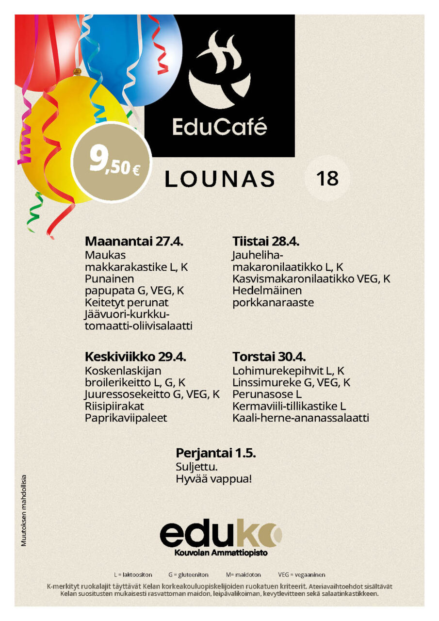 Järjestätkö tilaisuutta Kohoassa tai oletko muuten kiinnostunut tarjoiluistamme? Lähetä tarjouspyyntö: educafe@eduko.fi