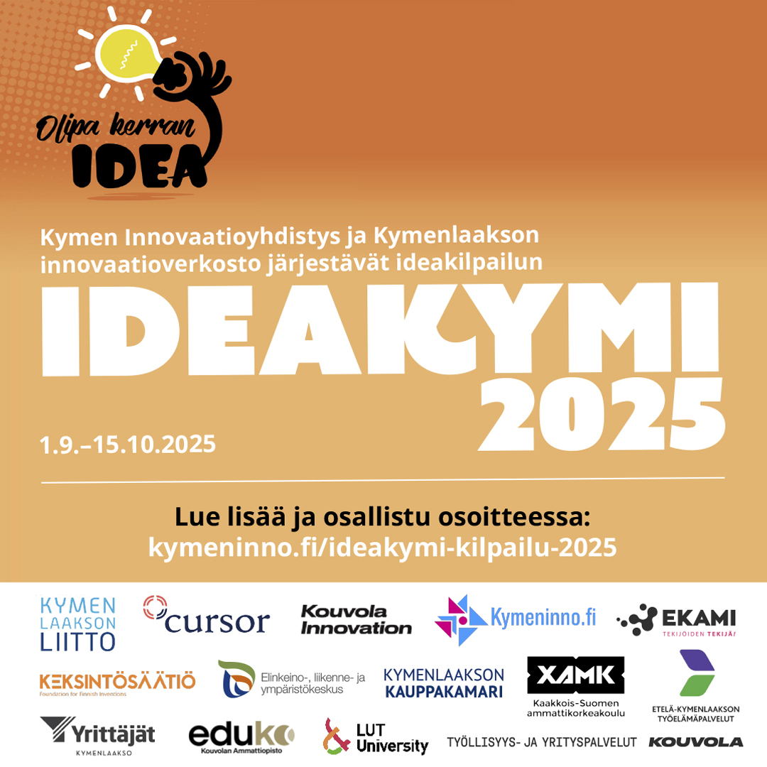 Tänä syksynä järjestettiin kolmatta kertaa koko Kymenlaakson alueen kattava IdeaKymi-kilpailu, joka etsi lupaavia keksintöjä ja liikeideoita. Kilpailussa oli tänä vuonna viisi sarjaa, joihin saapui yhteensä 73 kilpailuehdotusta. Keksinnöstä liiketoimintaa -kilpailusarjaan tuli 43 ehdotusta. Erityisesti opiskelijoille suunnattu Idealla alkuun -kilpailusarja keräsi 11 ehdotusta. Myös koululaisille oli tänä syksynä oma Kasvava idea -kilpailusarja, johon saapui neljä ehdotusta. Vastuullinen tulevaisuus -kilpailusarjaan saatiin yhdeksän ehdotusta ja Rakennettu ympäristö -sarjaan kuusi kilpailuehdotusta.